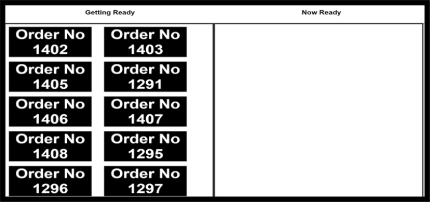 On the Mark Solutions' order status board allows customers to know the status of their order. Order tracking can be sent through SMS updates or simply tracked within the establishment and displayed on a screen in the pick up area. Especially useful in quick service restaurants customers love to know how soon their order will be ready, this creates that possibility. OTMS' order status board improves the efficiency of operations.